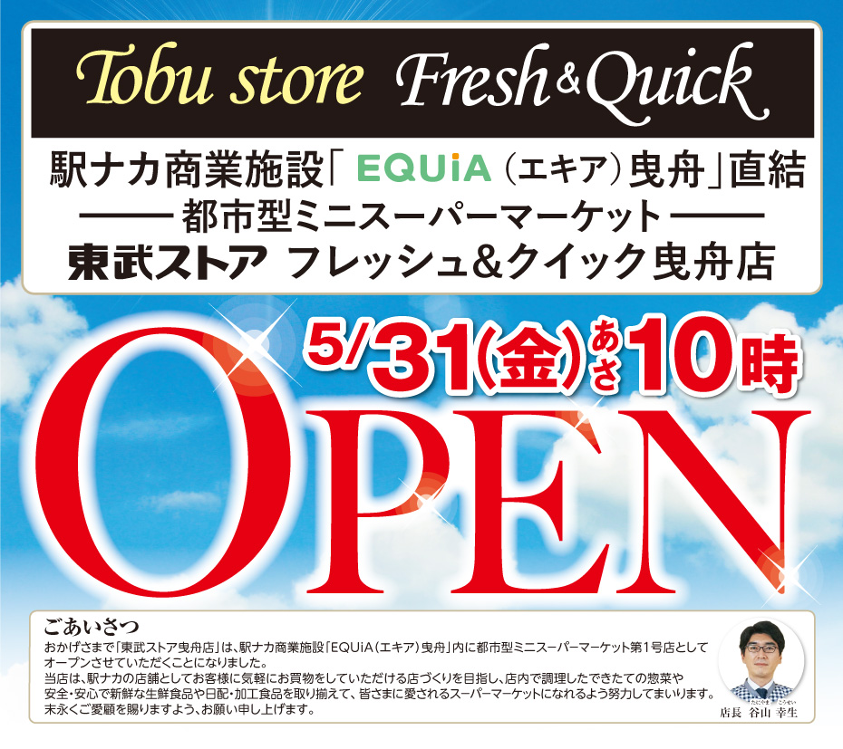 TOPページ > 東武ストア フレッシュ&クイック曳舟店 5月31日(金)あさ10時OPEN