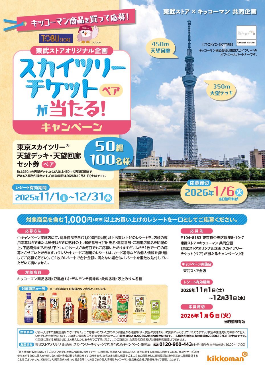 「東武ストアオリジナル企画 スカイツリーチケット(ペア)が当たるキャンペーン」係