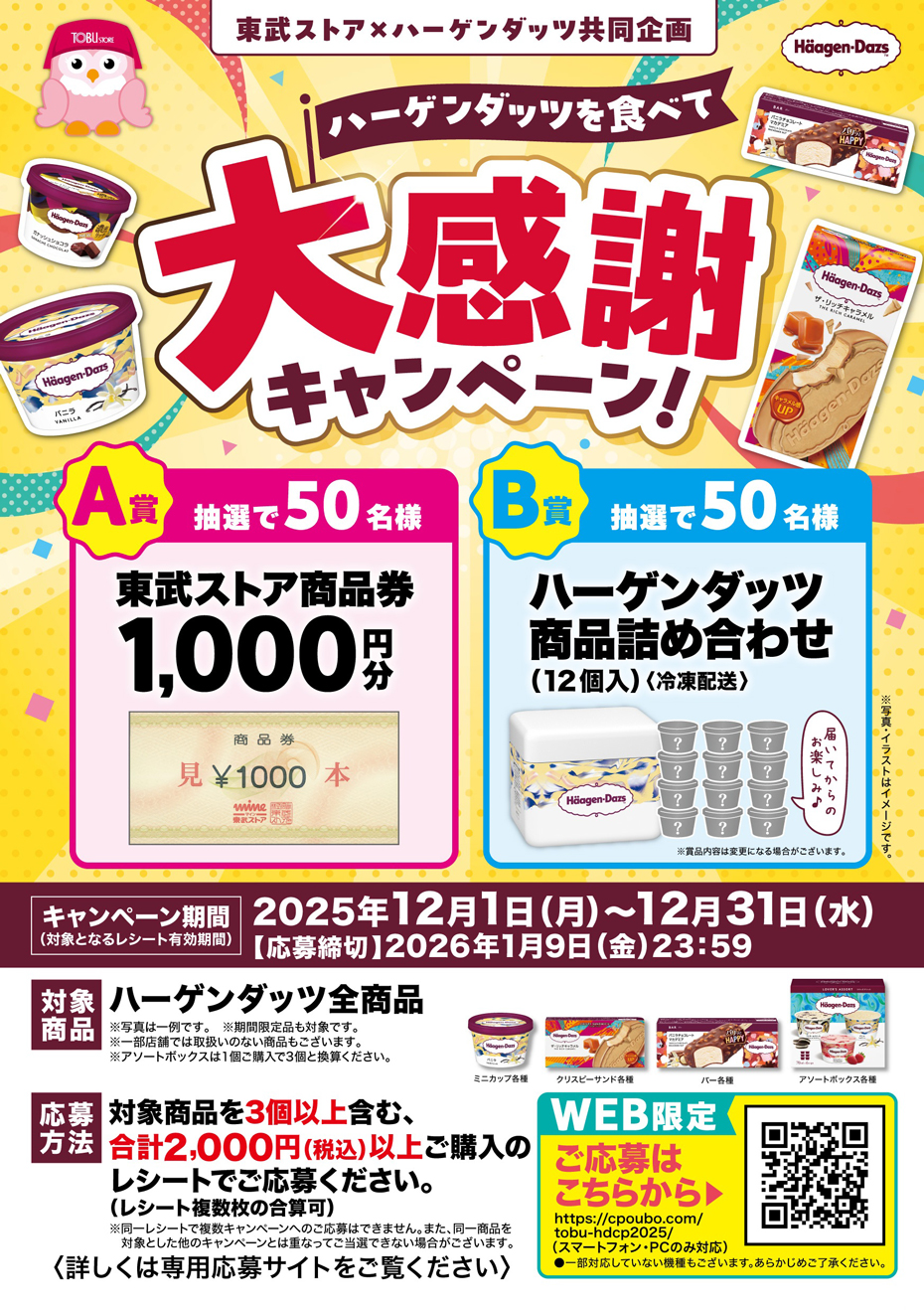 B賞:ハーゲンダッツ商品詰め合わせ(12個入) 50名様