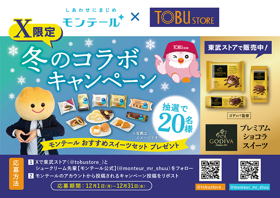 ②12月1日(月)9:00のシュークリーム先輩【モンテール公式】のキャンペーン投稿をリポストする。