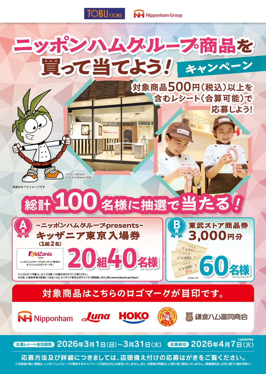 東武ストア・ニッポンハムグループ ニッポンハムグループ商品を買って当てよう!キャンペーン係